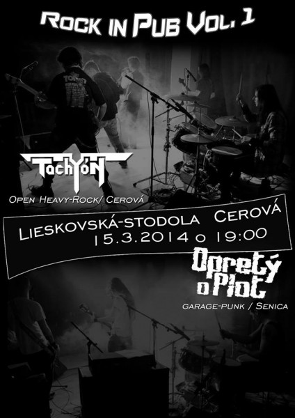 15.03.2014 - Cerová, Lieskovská Stodola; štart: 17:00 - 3. živé vystúpenie kapely Tachyón. Teraz na domácej pôde. Na úvod vás nabudí punková kapela OPRETÝ O PLOT (http://bandzone.cz/opretyoplot)