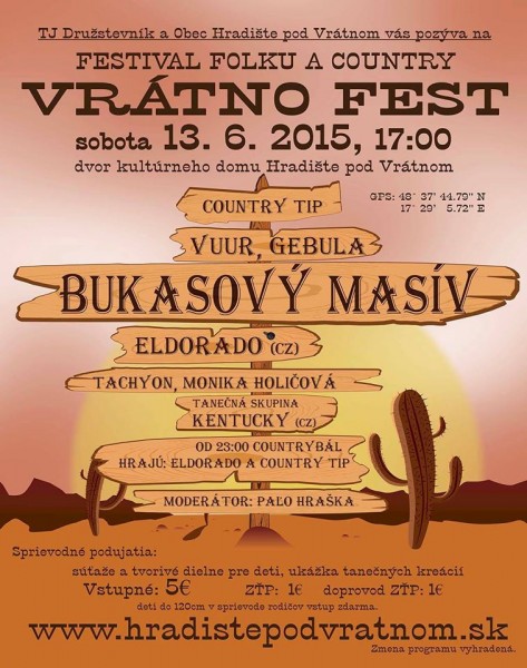 13.06.2015 - Hradište pod Vrátnom, dvor kultúrneho domu; štart: 17:00 - Obec Hradište pod Vrátnom organizuje VRÁTNO FEST. Prídite nás podporiť. Odštartujeme vám deň plný zábavy. Viac info na www.facebook.com/events/334328166758067